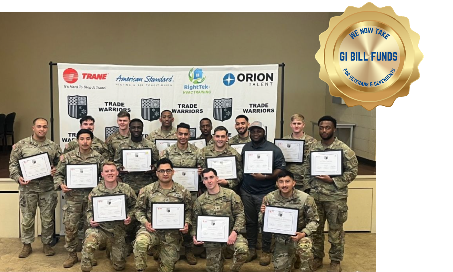 The Trade Warriors Boot Camp is free for eligible military personnel through employer-sponsored programs or GI Bill funding. Civilians are not eligible for this program. Corporate sponsors can explore hiring RightTek HVAC for on-site classes or conferences through the programs page.